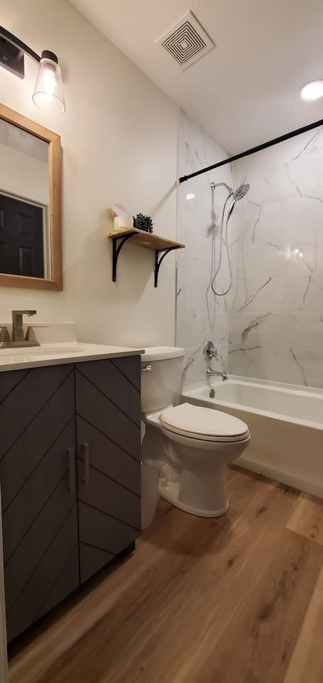 Kick back on the covered patio and watch the golfers go by, or relax inside where everything is fresh, modern, and sparkling clean. You’ll find all-new furnishings, a 50" Roku TV, high-speed fiber internet, and a fully equipped kitchen with everything you need — including a Keurig with kcups!