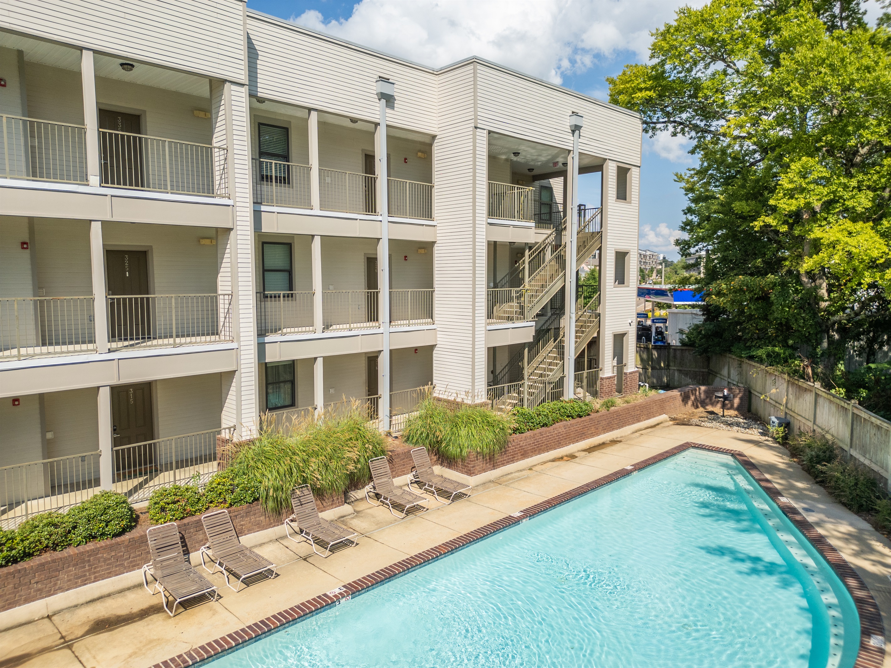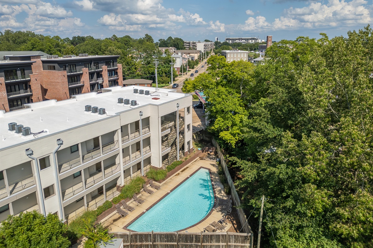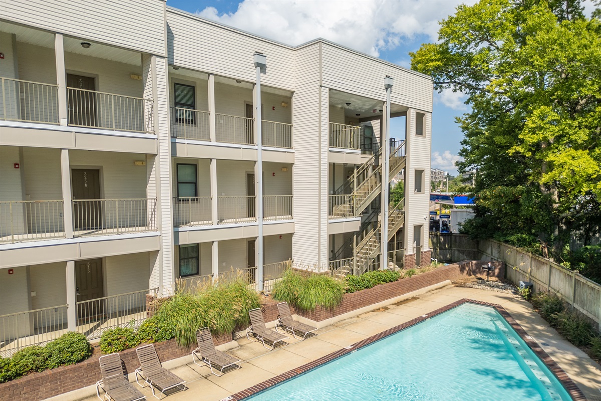 Cool off in the sparkling pool or soak up the sun poolside — the ultimate way to unwind between game days, classes, or nights out.