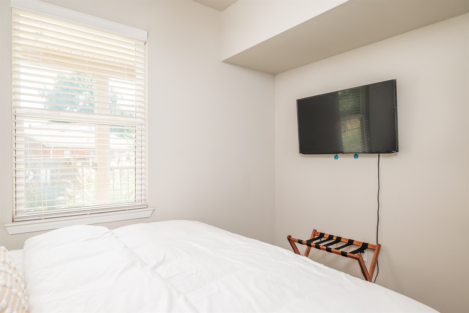 Cozy up in the queen bedroom with its own ensuite bath and TV — a perfect mix of comfort and privacy for your stay.
