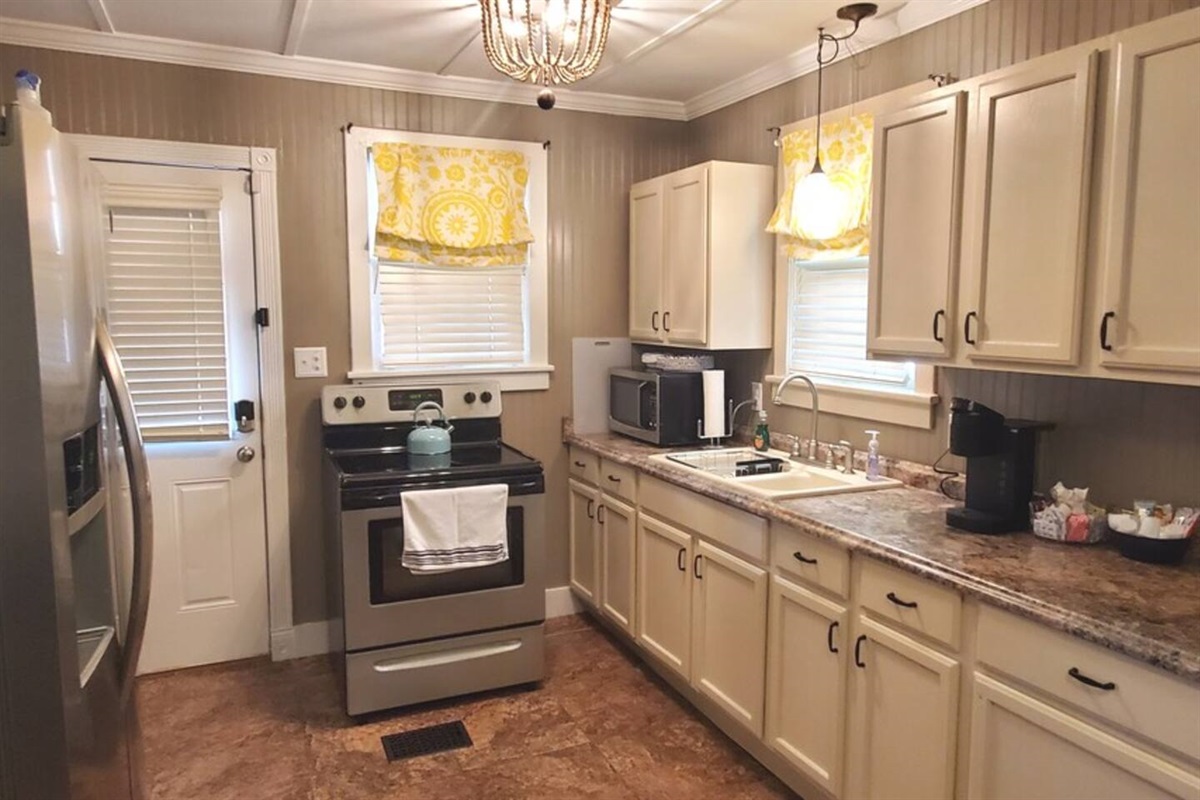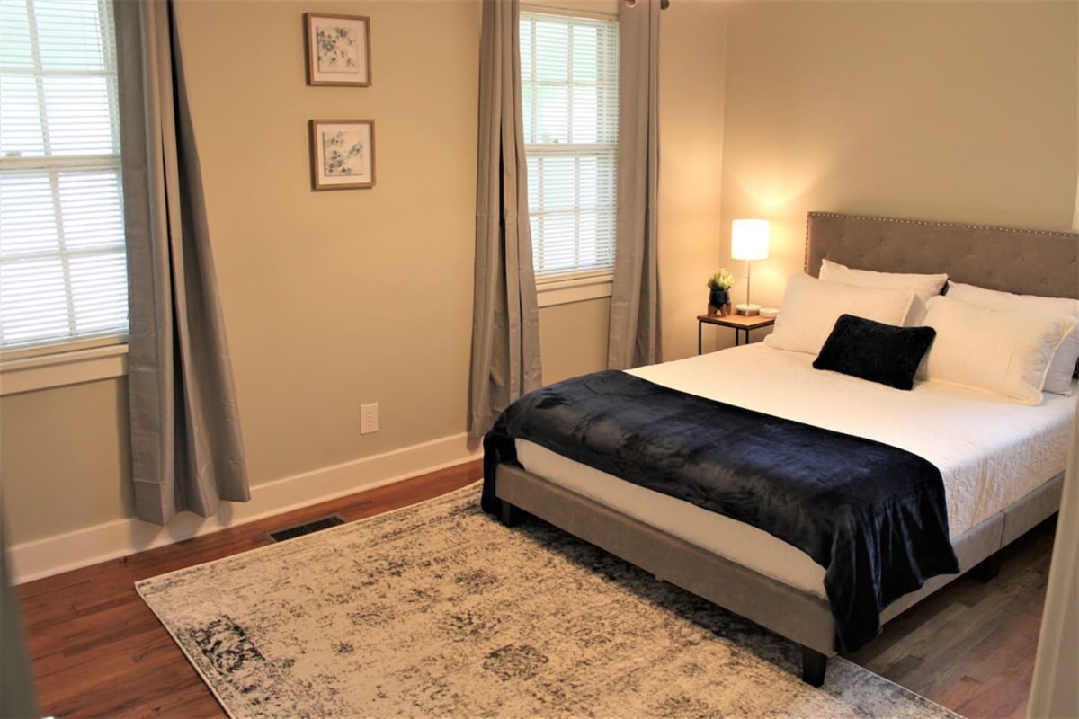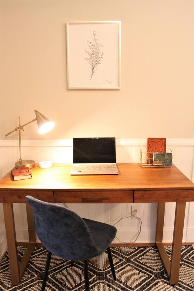 Inside you will find original hard wood floors, furnished kitchen, a desk space for working, black out curtains, and stylish decor. The most common comment about the house is, "It's so cute!" Everyone falls in love with it, and I think you will too!