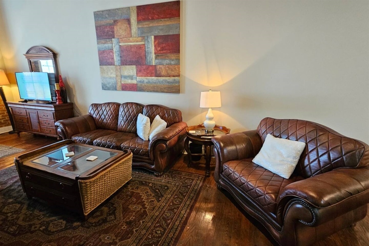 Welcome to your stylish getaway tucked inside a slice of Columbus history—the former Coca-Cola bottling building, built in 1920! This 1-bedroom loft perfectly blends vintage charm with all the modern comforts you love, from oversized leather sofas to a fully equipped kitchen.