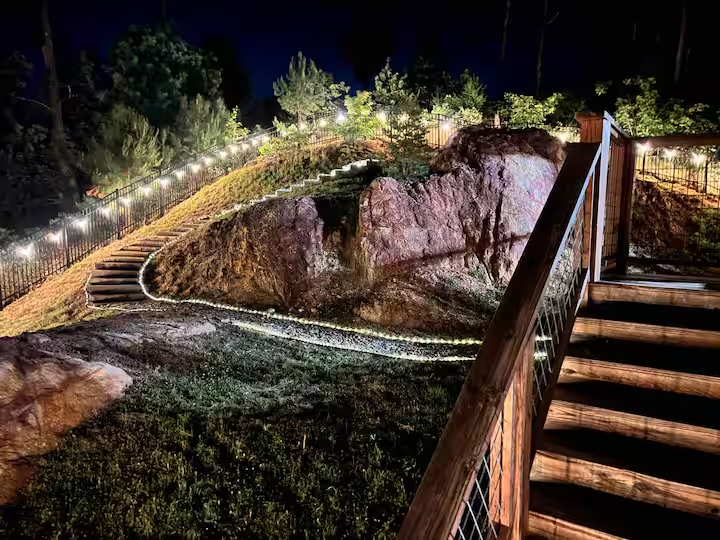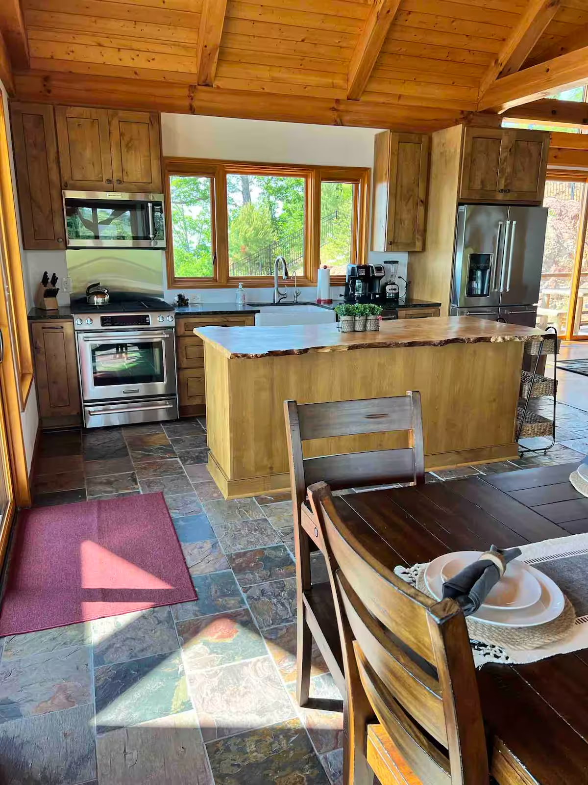 🌄 Multiple wraparound decks with rocking chairs & hammock