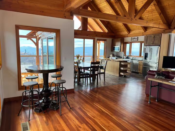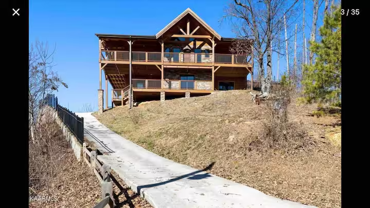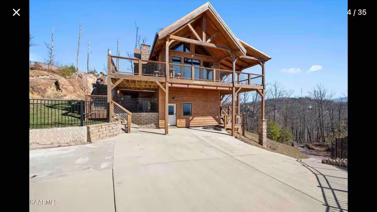 Perched high above Pigeon Forge, this fully private mountaintop retreat offers some of the most breathtaking panoramic views in the Smokies. Floor-to-ceiling windows, soaring beams, and wraparound decks create a sky-level experience you won’t forget - from glowing sunrises and dramatic sunsets to sparkling city lights below. If you're looking for rare privacy, unforgettable views, and a stay that truly feels elevated—you’ve found it.