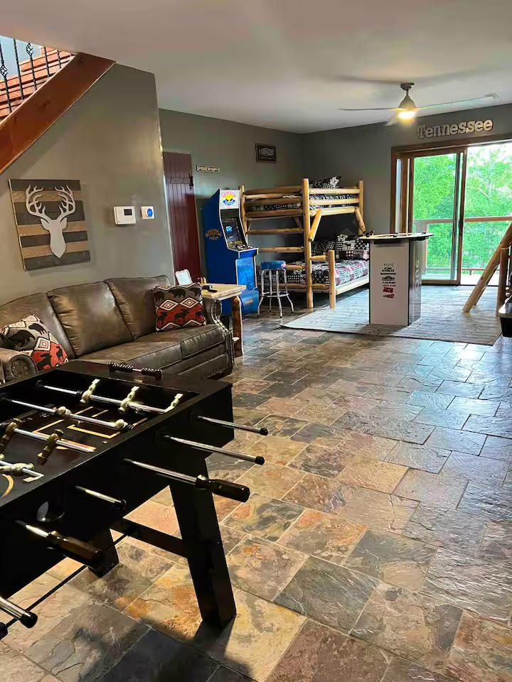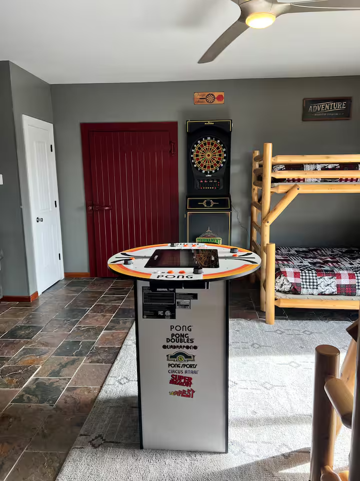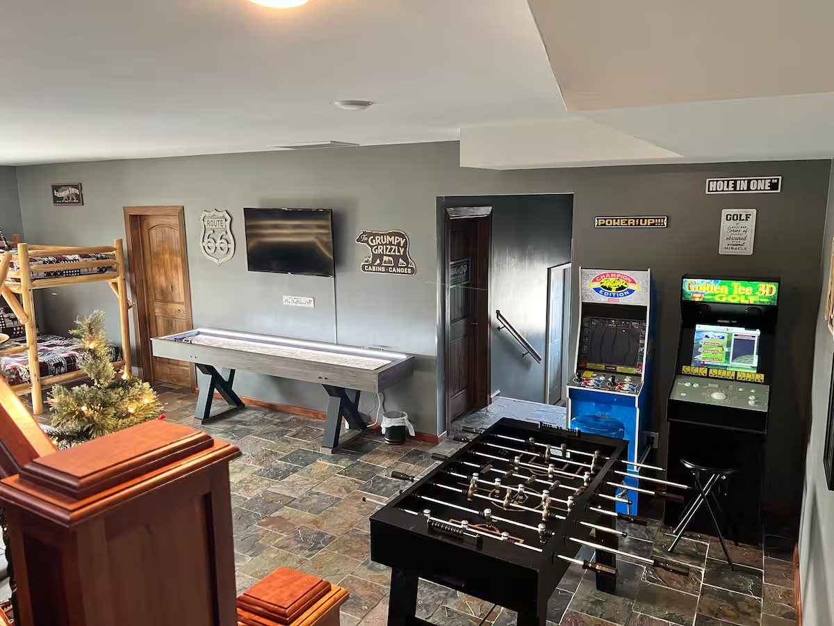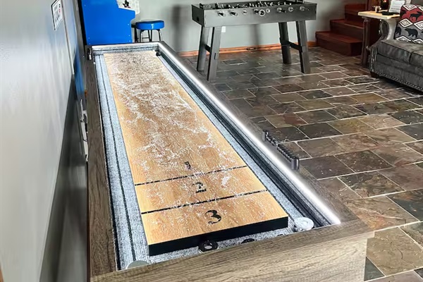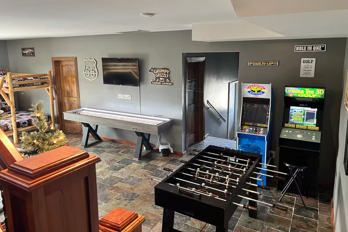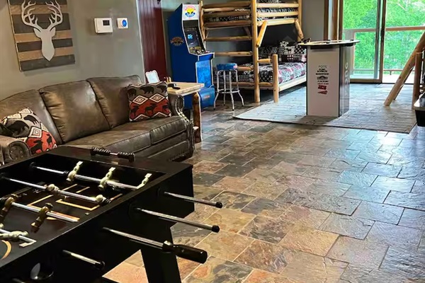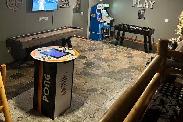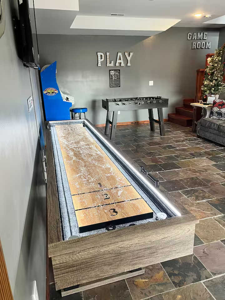 🎮 Game room with shuffleboard, foosball & arcade games