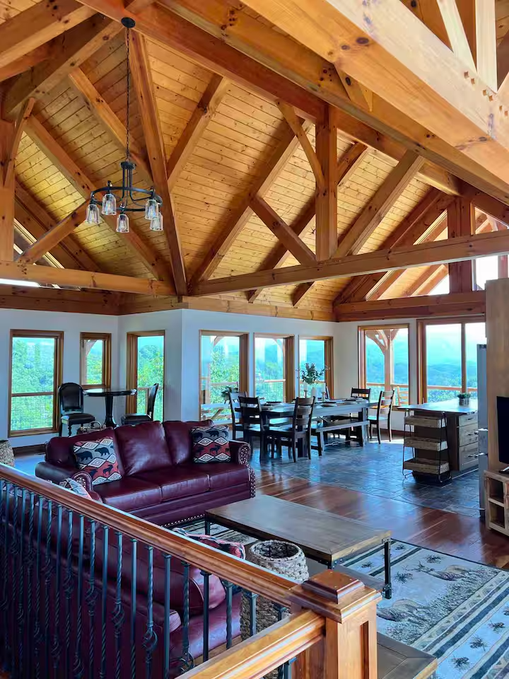 Every detail reflects a higher-end build—custom beams, quality materials, and premium finishes that elevate the entire experience beyond the typical Smoky Mountain cabin.