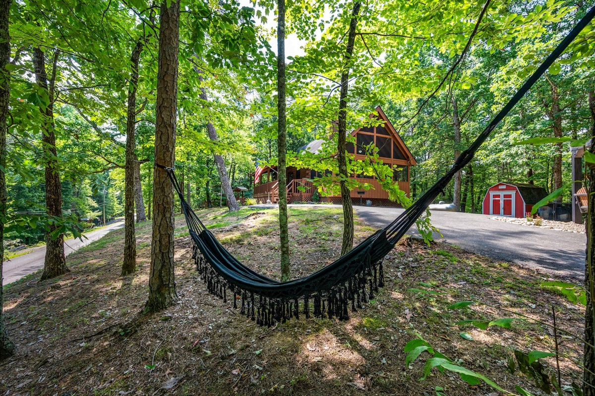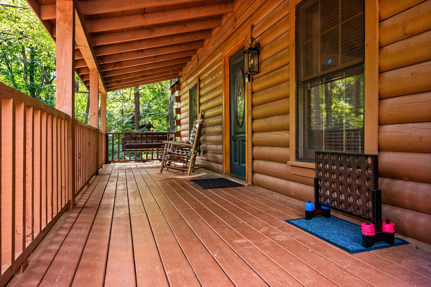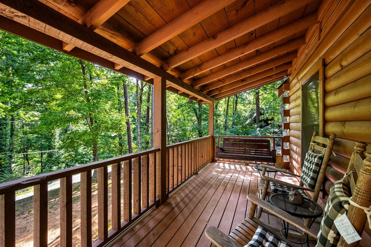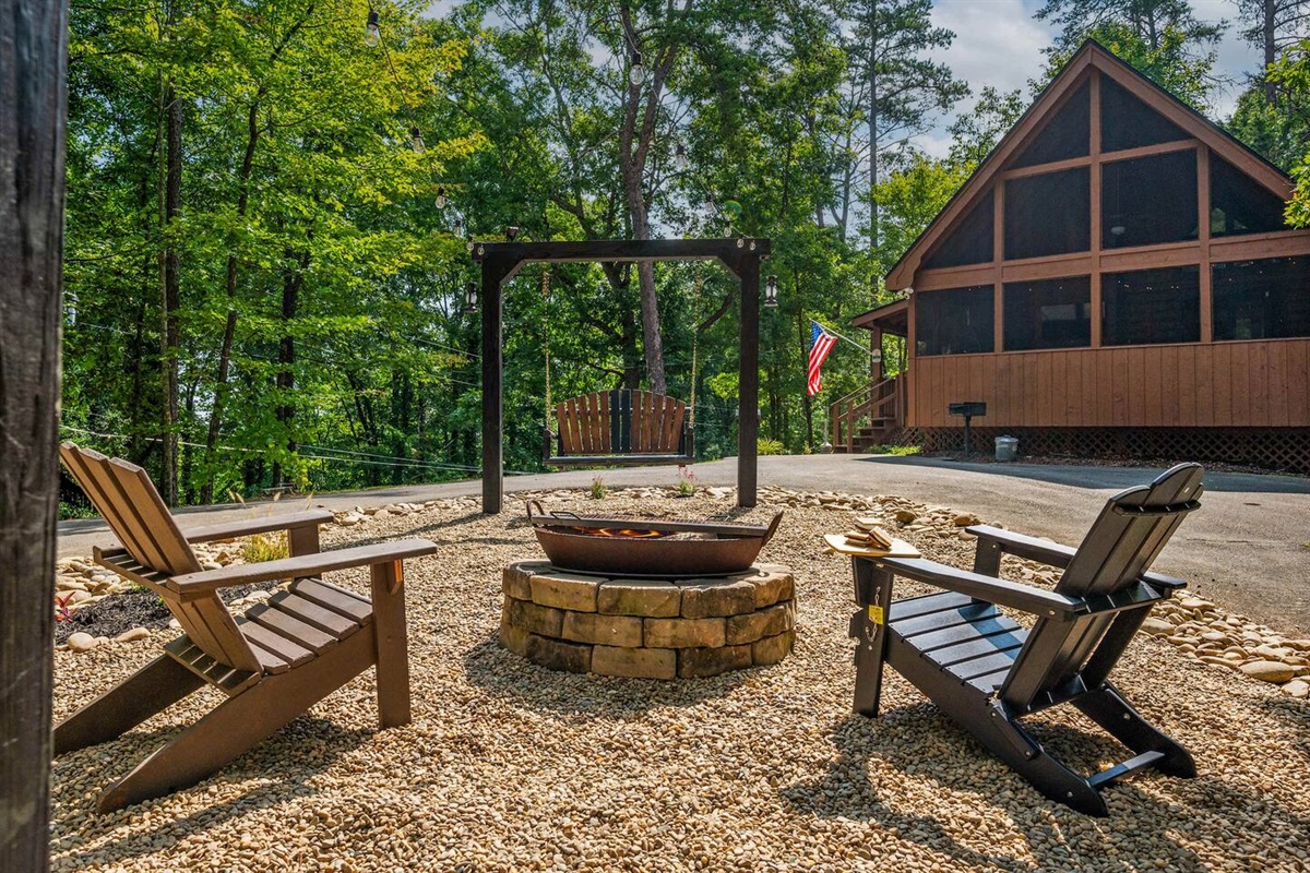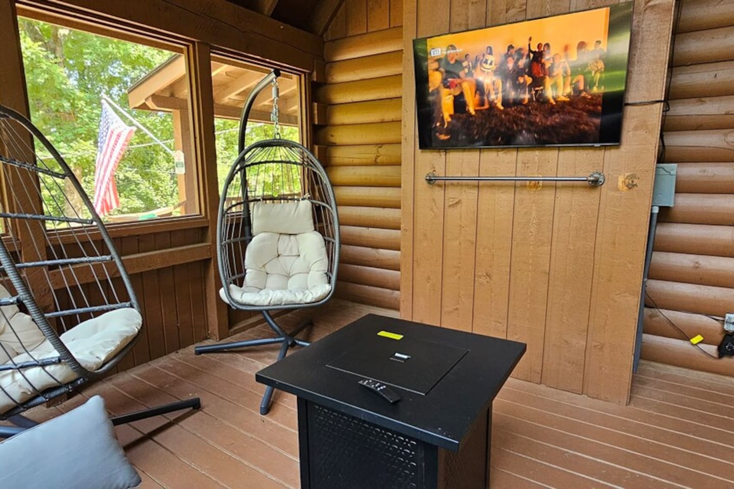Outdoors? Pure magic. Soak in the hot tub on the screened-in porch, swing beside the fire pit, or snuggle by the indoor gas fireplace. There's even a guitar for you to strum under the stars.