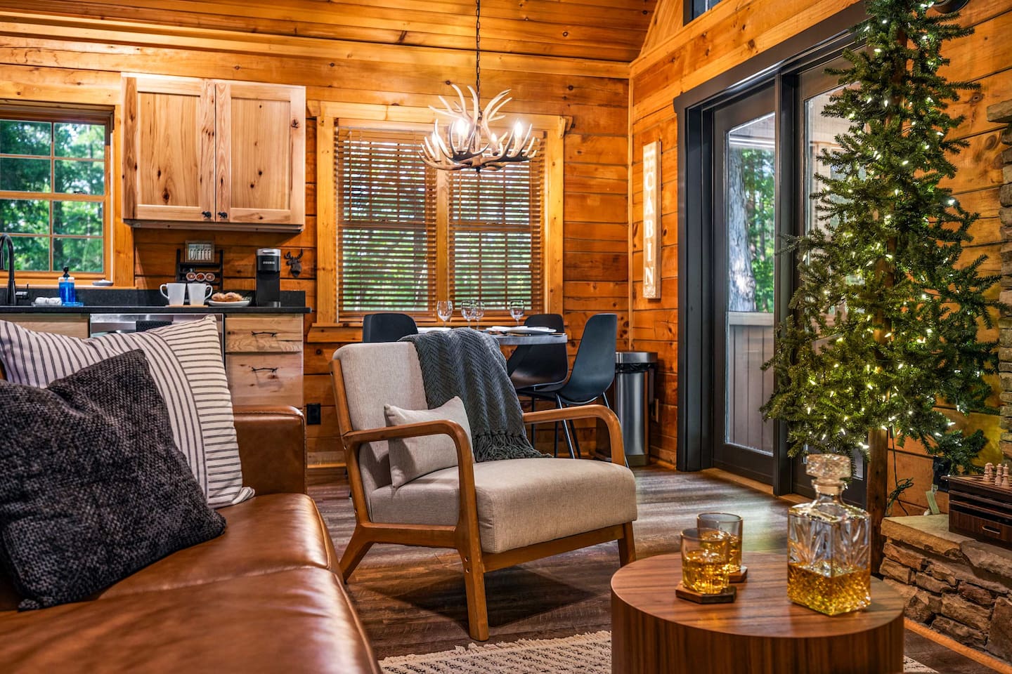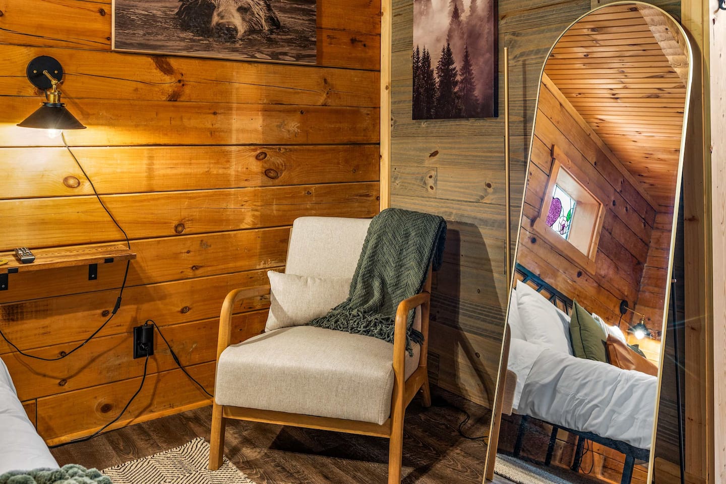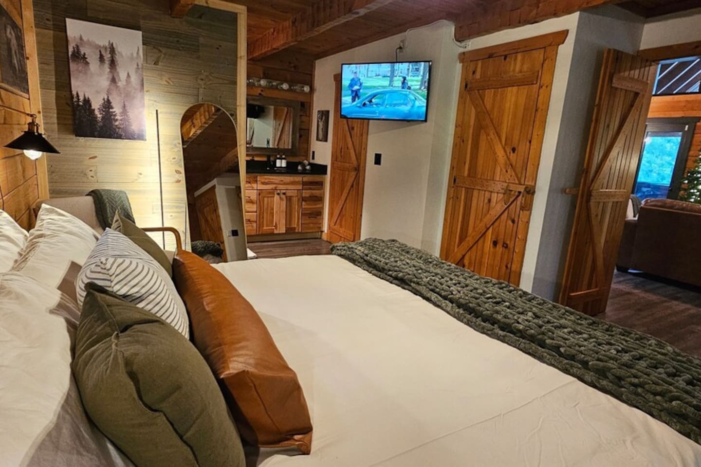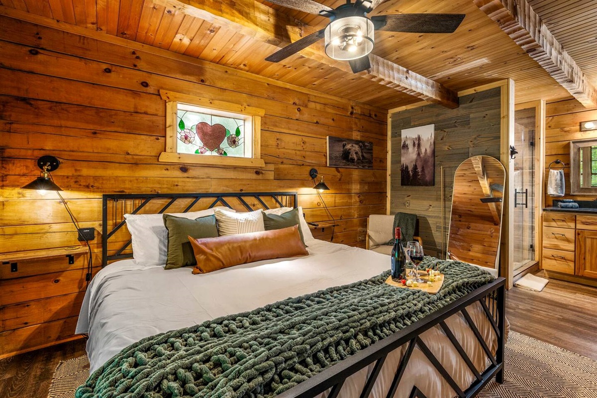 From the moment you pull up the string-light-lined driveway, you’ll feel like you’ve stepped into a storybook getaway. Inside, you’ll find brand new furnishings, a luxurious king bed with cool memory foam, and a walk-in rain shower that’ll have you saying “ahhh” every morning.