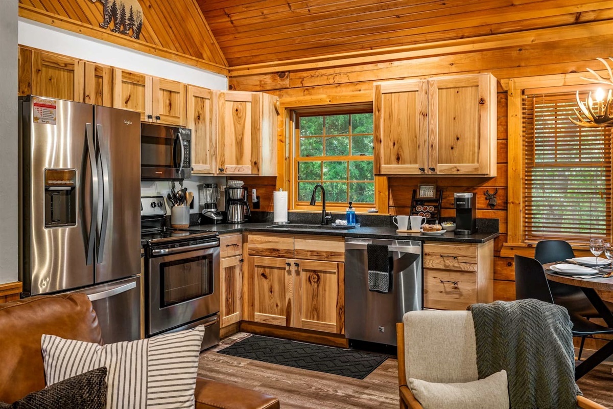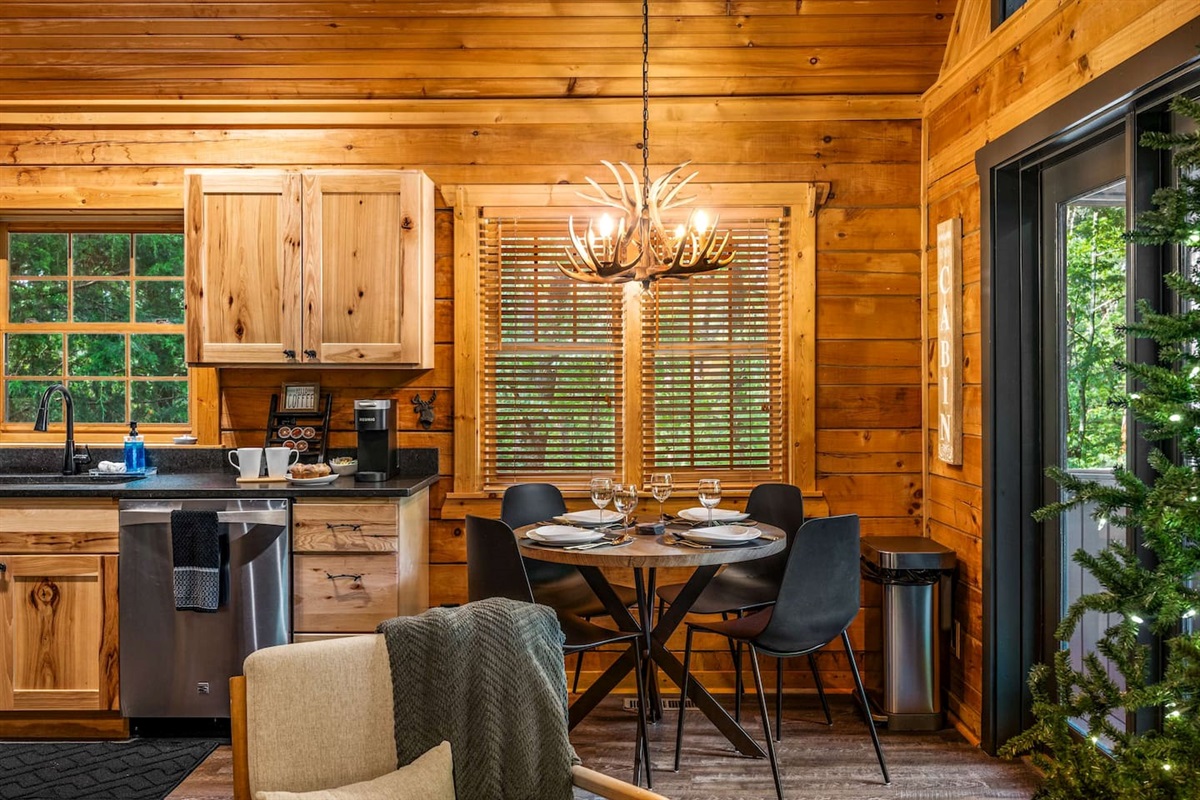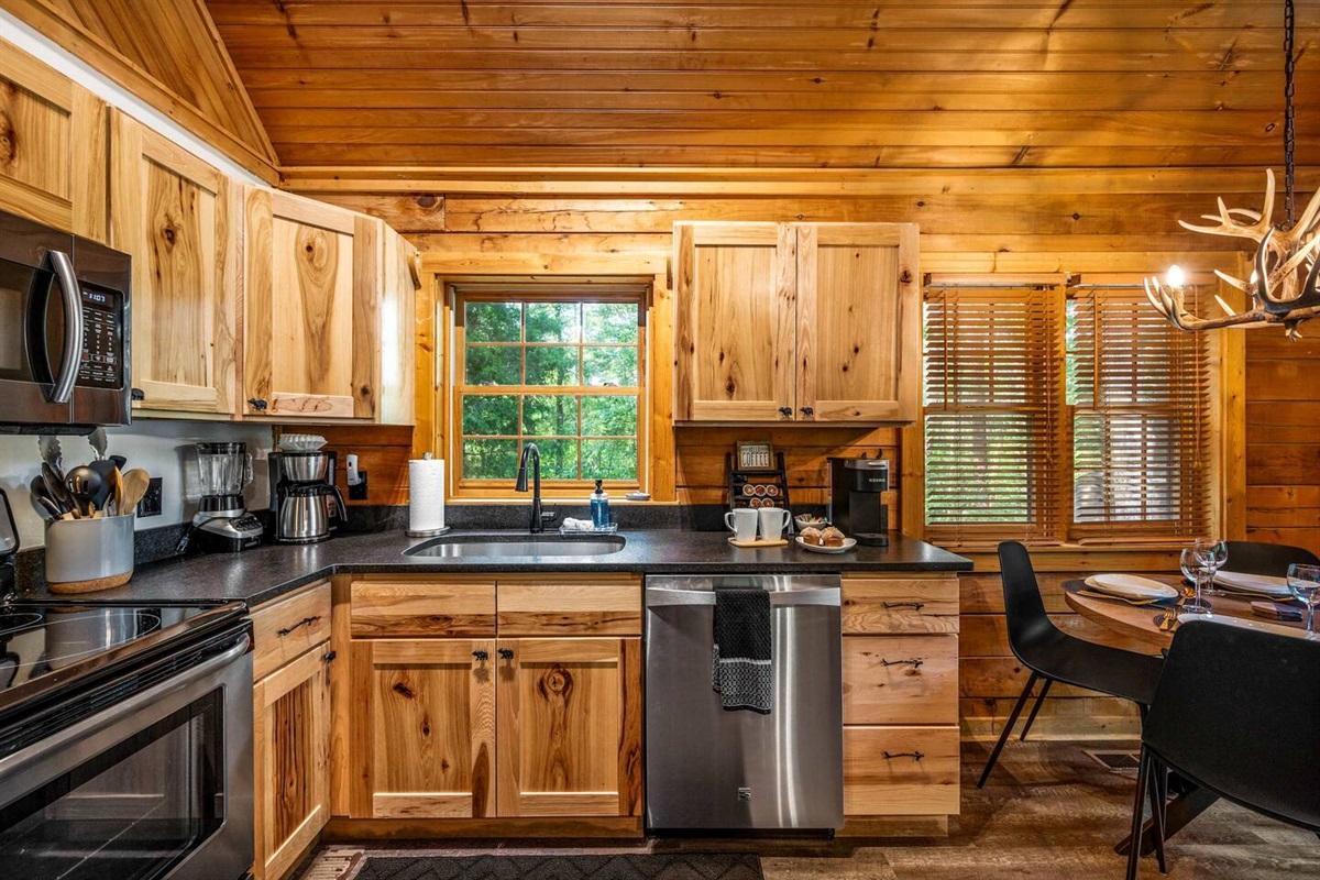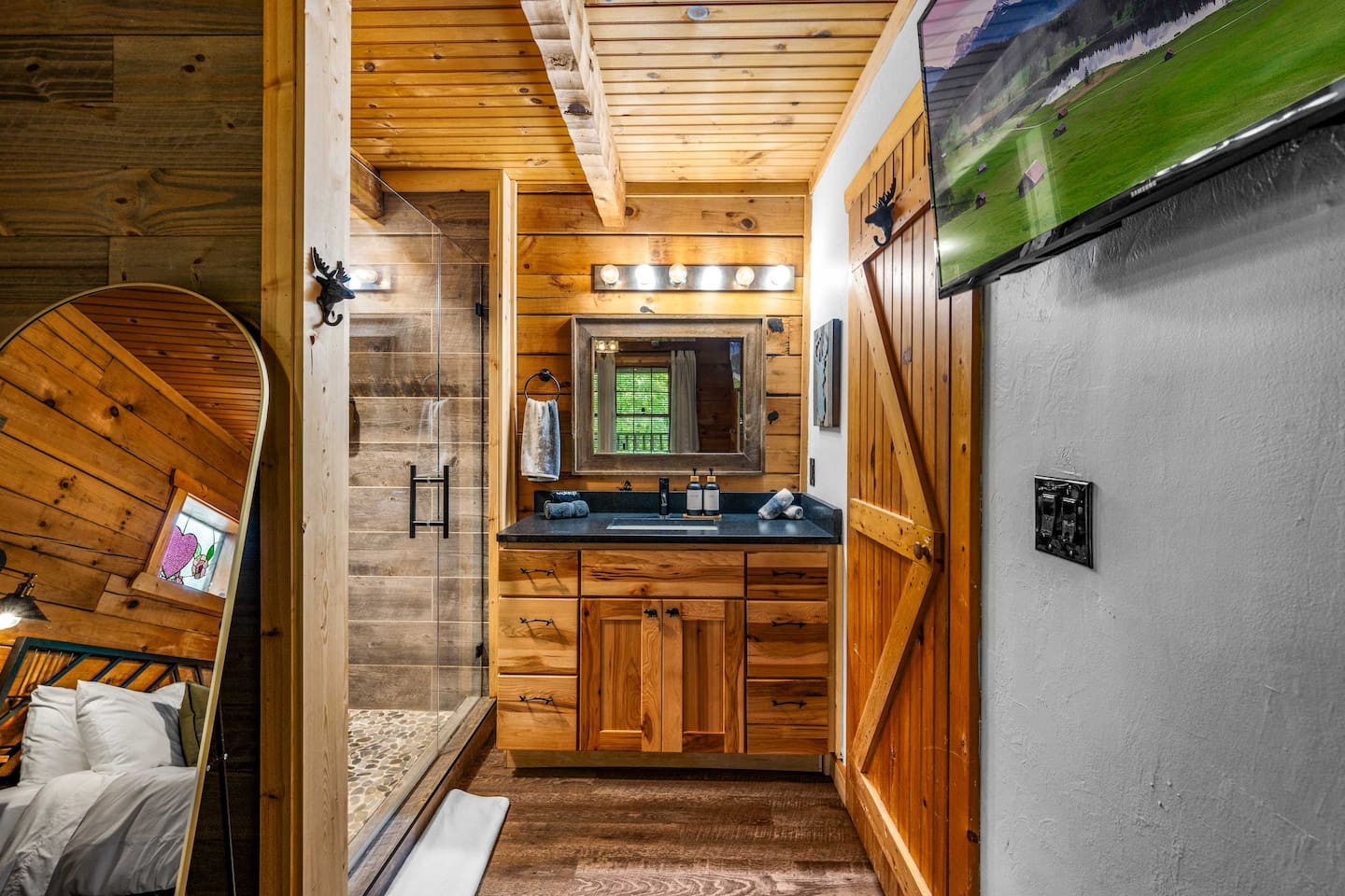 From the moment you pull up the string-light-lined driveway, you’ll feel like you’ve stepped into a storybook getaway. Inside, you’ll find brand new furnishings, a luxurious king bed with cool memory foam, and a walk-in rain shower that’ll have you saying “ahhh” every morning.