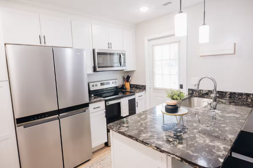 Relax on the covered private patio as golfers pass by, or enjoy the fresh, modern interior—thoughtfully designed and immaculately clean. The space features all-new furnishings, high-speed fiber internet, and a fully equipped kitchen stocked with everything you need, including a Keurig and K-cups.